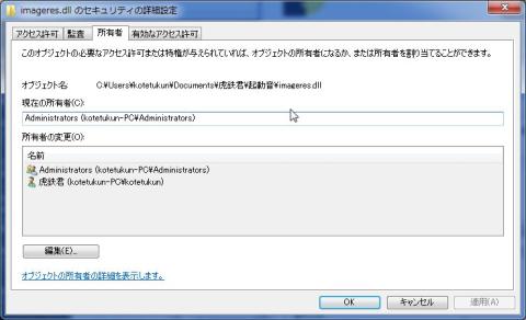 ここで imageres.dll のアクセス権がSYSTEMになっていてリネーム等が出来ないので