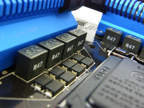 その他ミリタリークラスIIIの★★★★★を標榜するだけあって、DrMOSIIによる電源管理によって消費電力と発熱を抑えているとか、高耐久パーツとか上位製品と同等の機能を備えている。