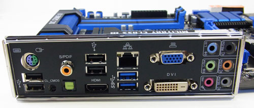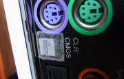 背面IOパネルはシンプルな構成。D-SubとPS/2がついている方が安心できる私はレガシー。またCMOSクリアボタンもついている。コレ、ASRockだともっとでかいスイッチなのだが、こちらはペン先など細いものを突っ込んで押すタイプ。