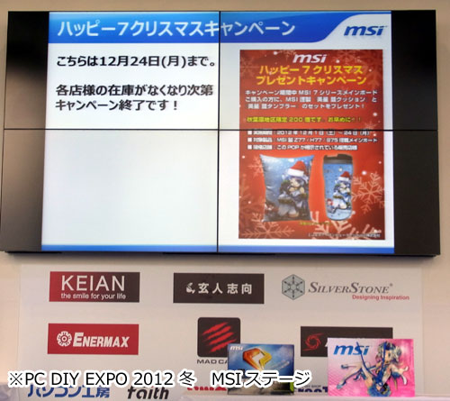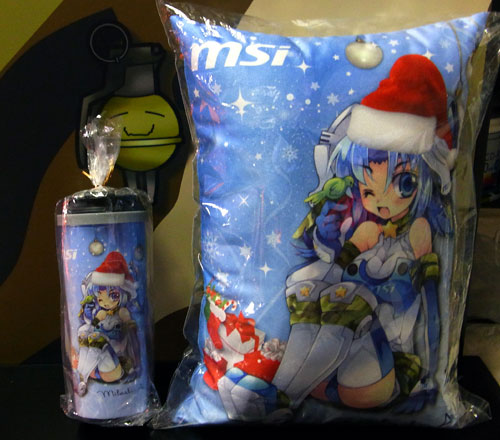 MSIの指定マザーを購入すると美星藍タンブラーとクッションがついてくるという秋葉原らしい地域限定キャンペーン。マザーは間に合っているが、これは欲しい!メリークリスマス!