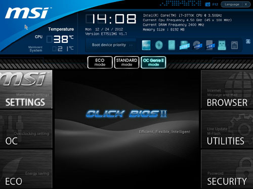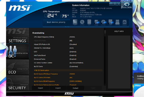 グラフィカルなUEFIは、従来型BIOSから配置をがらっと変えている。設定項目の少ないB75MA-P45では気にならなかったのだが、特にオーバークロック関連の項目が増えた事により少々複雑になっている。