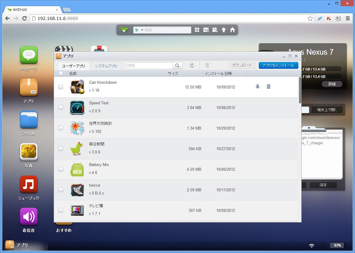 今回はNexus 7にインストールしました。