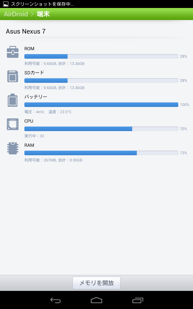 この画面から「メモリの開放」が可能なので、特にスマホなどパワーの低い端末で活躍できそうですね。