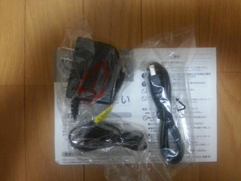 製品本体の他に、電源アダプタ、USBケーブル、取説1枚という構成です。簡易パッケージだけなのかよくわかりませんが、ユーティリティCDは付属しません。