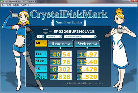 ただ、デスクトップの40MB/sとの差が何故発生するのかが、分かりません><