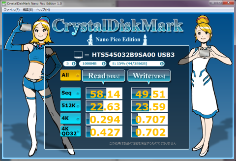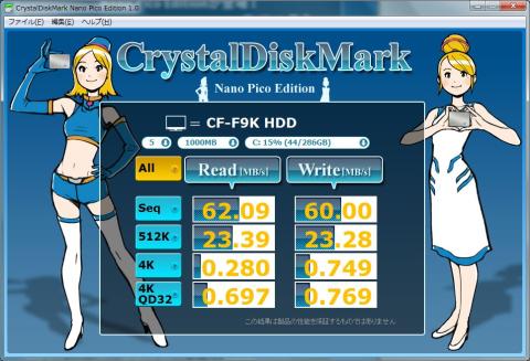 このドライブは、SATA 1.5Gpbs なので、参考値にしかなりません。