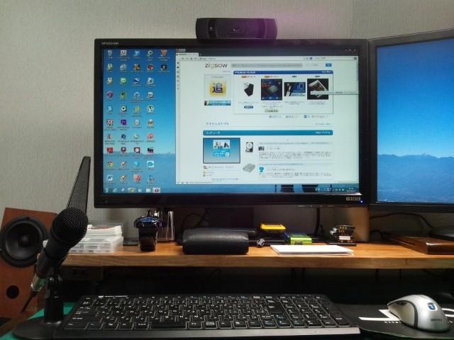 今まで使っていた20インチのスクエアモニタを隣に設置しデュアルディスプレイにしました。