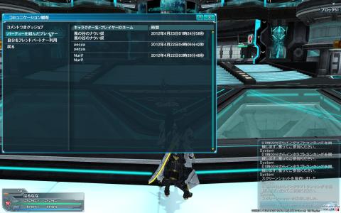 コミュニケーション情報、パーティーを組んだキャラクターが表示されます。