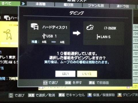 でネットワークダビングをした時は録画時間の1/3くらいでダビングできたのでどこかで遅くなってるんだろうね。ドライブを繋いでるPCの性能も影響するみたいです。我輩!テトであーる♪さん