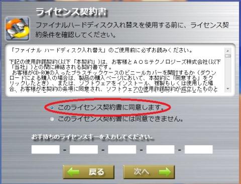 インストールし起動するとライセンス規約に同意選択画面が出ますので、同意クリック