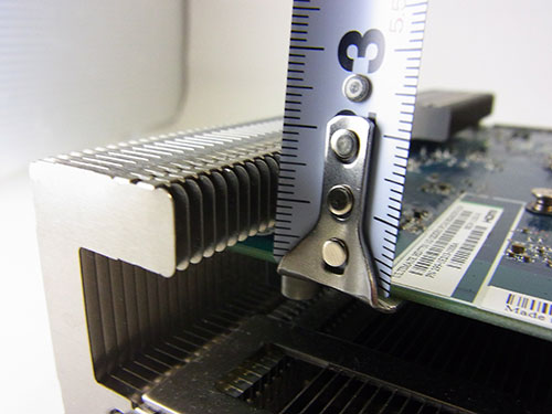 今回のボードは裏面…つまりPC装着時のCPUクーラー側に15mmの張り出しがあるので、CPUクーラーとグラフィックボードが干渉するという中々レアなケースが想定される。