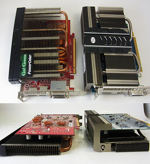 どれも基本スペックに差異は無いが、PowerColorとClub3Dは見る限りほぼ同じ製品で、2本のヒートパイプが直方形のヒートシンクに突き刺さったシンプルなスタイルで比較的廉価。 HISは青い波型のヒートシンクが特徴でヒートパイプが4本。長さは若干長くなる。