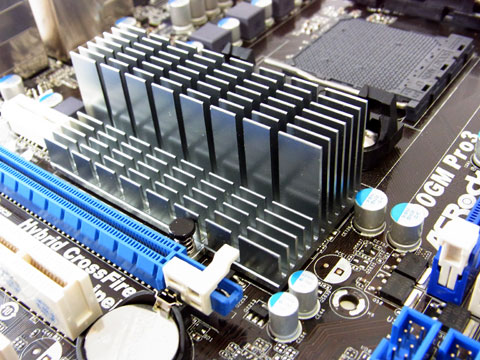 まるでファンレスグラフィックボードのように巨大なチップセットヒートシンク。780G搭載のASUS M3A78-EMもチップセットにしてはいかついヒートシンクを持っていたがそれ以上。