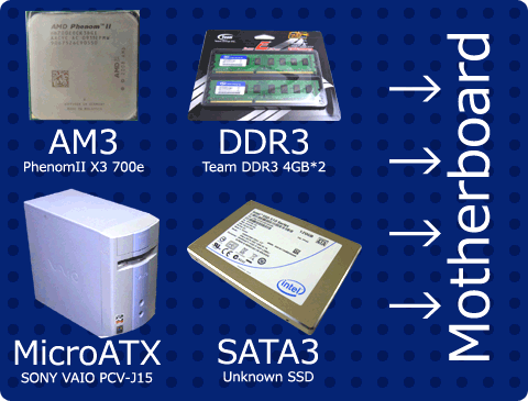 という訳で条件は「PhenomII X3 700e」を使えて「SATA3」「DDR3」に対応する「MicroATX」マザー。