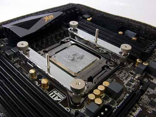 1155等と大きく異なるのがクーラーの固定方法だ。CPUソケットの枠自体にねじ穴が切ってあり、直接マウンタを固定するというもの。今回のナイトホークのようなタイプなら、メンテナンスホールの無いケースでもクーラーマウンタごと表側から着脱可能だ。
