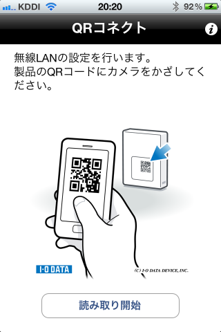 読み取りは本体の裏側のQRコードを読み込ませます。