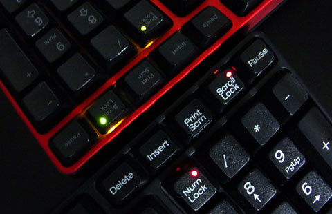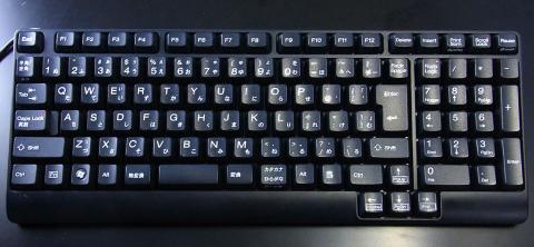 一方今回のUNITOCOM UN-KEY105/Bは一般的なキートップ表記のそれで、定番のデザイン。キートップ表記でここまで全体の印象が変わるとは驚きだ。また面白い相違点としてインジゲータLEDのカラーがある。
