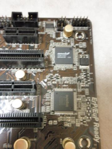 下位版とはいえ、8+4 電源フェーズ、SATA8ポート+eSATA1ポート、オンボードの電源、リセットボタン、I/OにはCMOSクリアボタン、ゴージャスなゴールドコンデンサと、下位版とは思えないほどの仕様となってます。