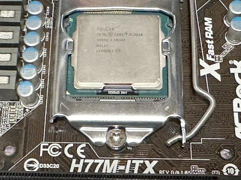 カバー代わりに使ったのは、Core i3-3220です。Core i7-3770と同じIny Bridge世代で、定格周波数3.3GHz、2コア4スレッドというCPUです。ちなみに販売価格は1個80円でした。Core i7-3770が売られていれば多少高くてもそちらにしたのですが、売られていた未チェックジャンクの中で最も高性能だったのはCore i7-2600でした。ちなみにこちらは1個980円です。