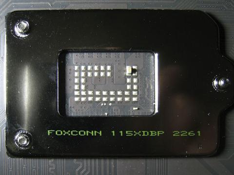 CPUソケットのバックプレートにはFOXCONNの印字があります。