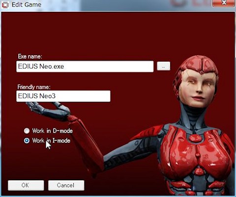 EDIUS Neo3を登録して「Work in I-mode」をチェックしてokをクリック。