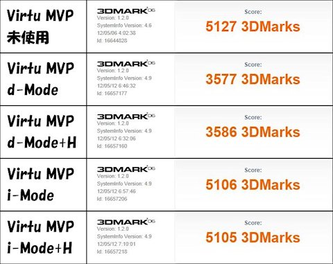 正直、ここでの効果は?です、一番いいのはVirtu MVPを使用しない場合でした。