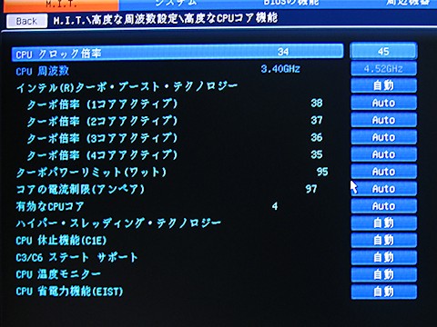 そんな訳AutoTuningはあきらめ、単純にBIOSで倍率変更を実施しました。