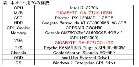 赤字部分が,本レビュー対象である”GA-Z77X-UD5H”の優位性です.