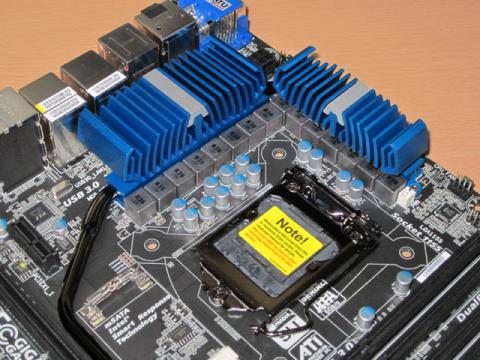CPUソケットはFOXCONN製。MOSFETに設置されたヒートシンクはやや背が高いので大型のトップフローCPUクーラーを使用する場合には干渉に注意が必要かもしれません。