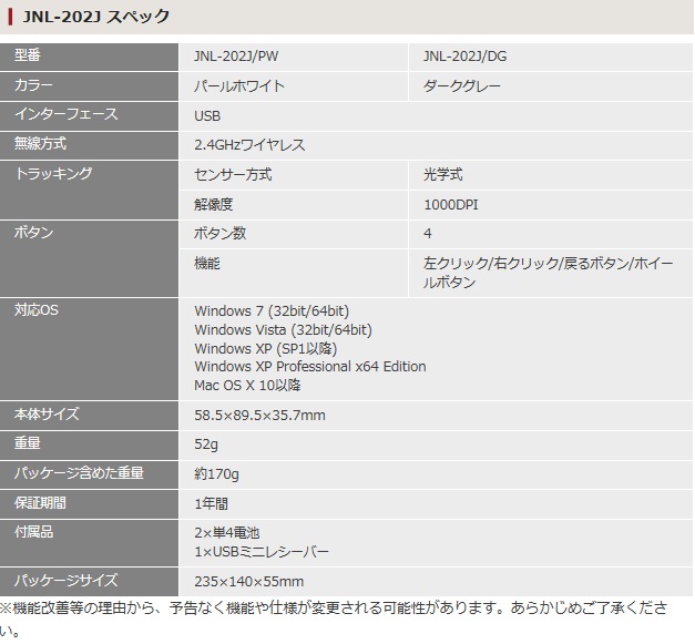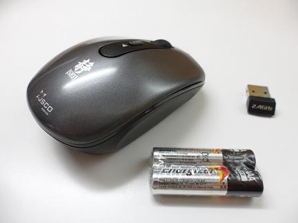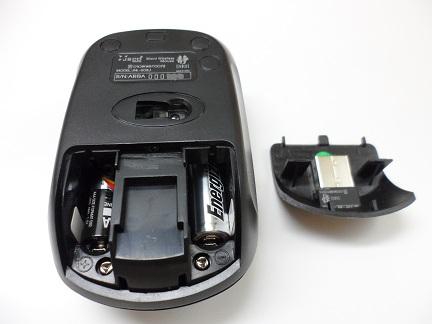 マウス本体とレシーバー、単四アルカリ電池がありました。