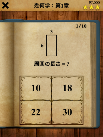 回答は4択。出題を素直に答える形式と、出題の解と同じ解を探すタイプがメイン。