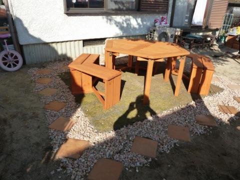 ウッディーガーデン 六角テーブル 4点セットは22,800円を20,000円で。