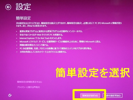 設定は、簡単に済ませたいので、簡単設定を選びます。