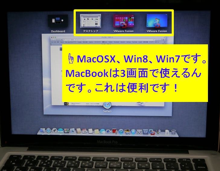 MacBookProは、MacOSX、Windows8、Windows7が動かせることができます。