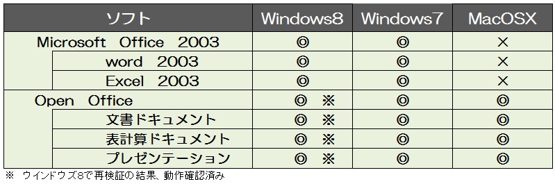 Windows8でのOpen Officeソフトも動作確認ができました。