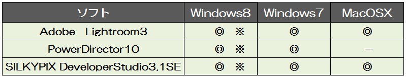 その結果、Windows7で動作していたAdobe Lightroom3、PowerDirector10、SILKYPIX DeveloperStudio3.1SE の各ソフトは、Windows8でも使用できるようです。