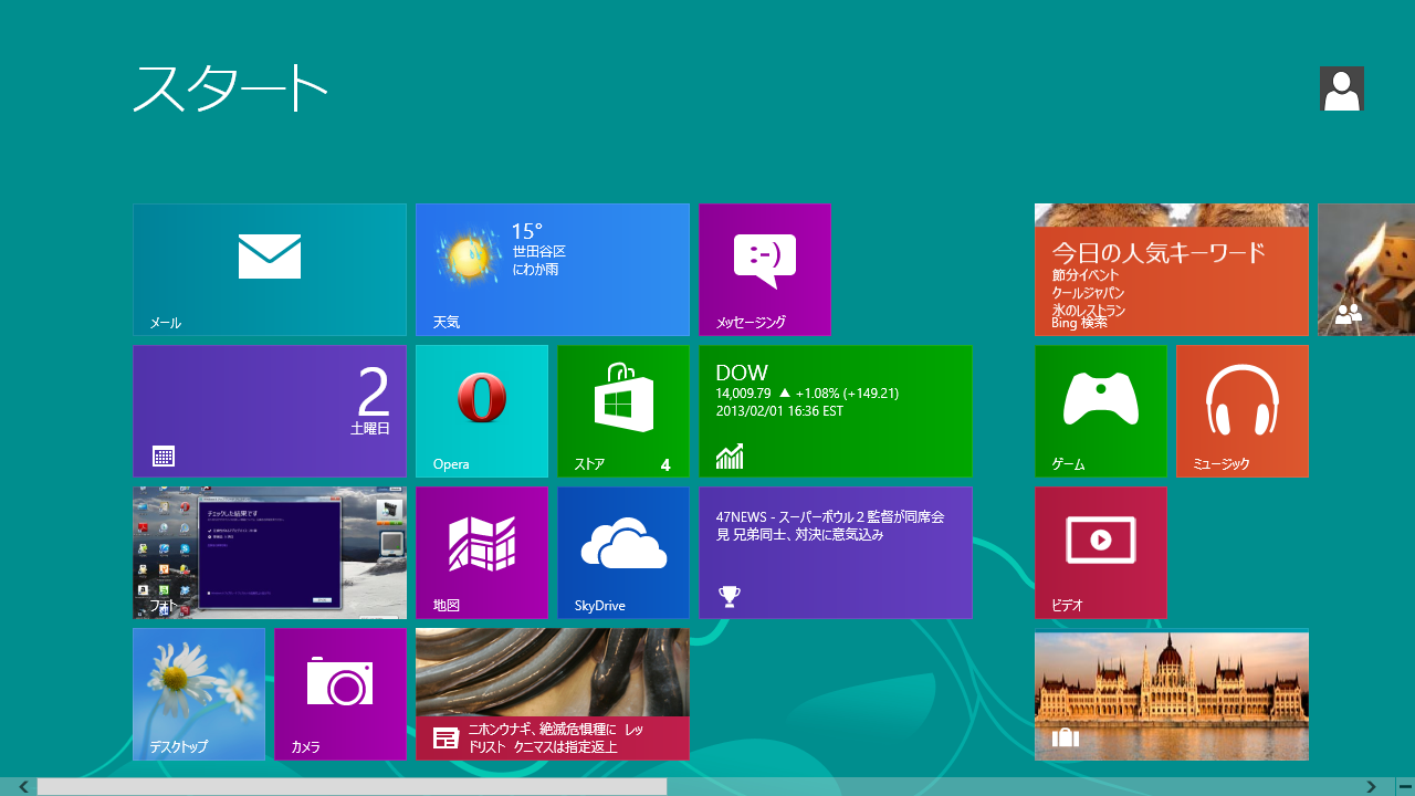 ロックスクリーンの後に出てくるタイルのようなデザインのUIをモダンUI(旧メトロUI)と呼ぶ。