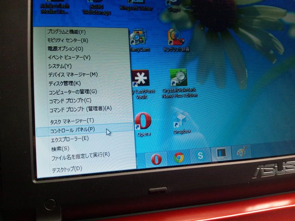 左下にカーソルを持って行き右クリックすると、コントロールパネルなどの便利機能のメニューが開きます。