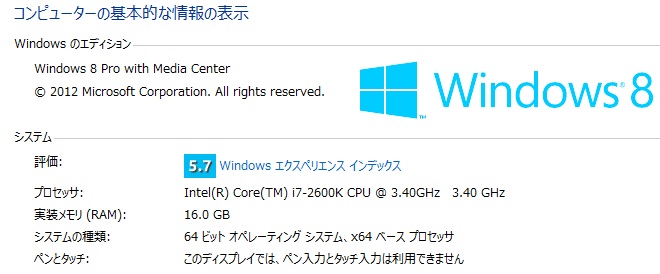 元はWindows7Proを入れていたのですが、アップグレードして8Proになりました。