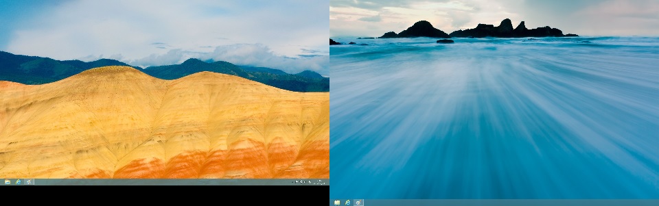 デスクトップの画像は左右別々する事ができます。スライドショーで次々変わっていくのでなかなかきれいです。