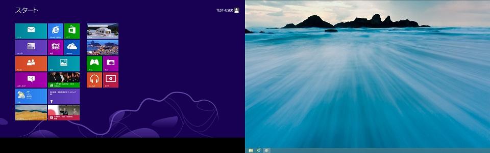 メインディスプレイがスタート画面、サブはすでにデスクトップです。クリックしてデスクトップに戻るわずらわしさも無く、なかなか便利です。