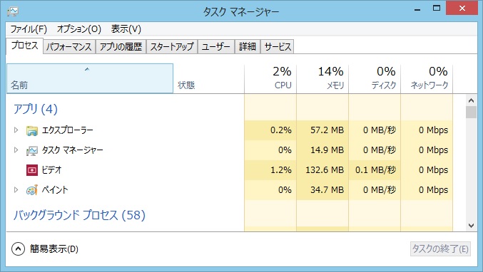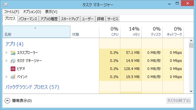 この8標準アプリ、タスクマネージャで見るとバックグラウンドにいる間はほとんど止まっているようです。