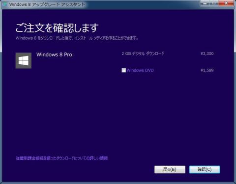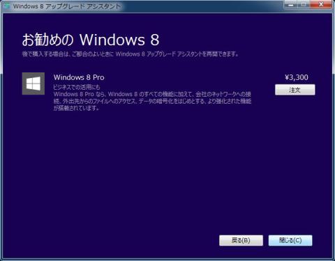 今回のアップグレードは、Windows 8 Proしかないので、お勧めのWindows8は、"Windows 8 Pro"が表示されます。
