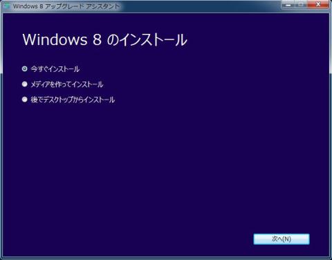 ダウンロード終了後、データのチェックが終わると、すぐにインストールするか、メディアを作って後でインストールするか、ダウンロードしたデータをデスクトップに保存するかの選択ができます。