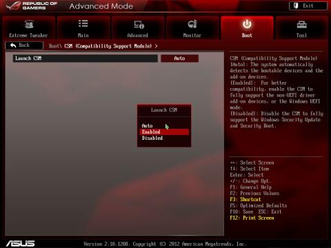 私の場合は、クリーンインストール目的なので、UEFI BIOSのBoot設定で、CSM(Compatibility Support Module)設定から、CSMを有効にします。