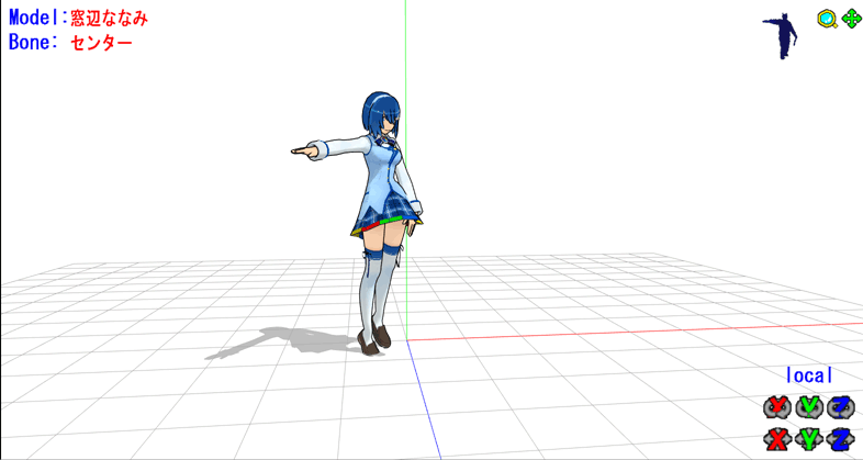 こうするとキャラクターモデルの腰から下は固定され、上半身のみの認識でも複雑骨折状態になったりしない。あとはMMD側のカメラ位置を調整して、キャラクターの上半身を表示できる程度の範囲にすれば…