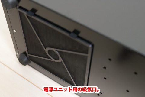 底面には電源ユニット用の吸気口が開いています。フィルター付き。