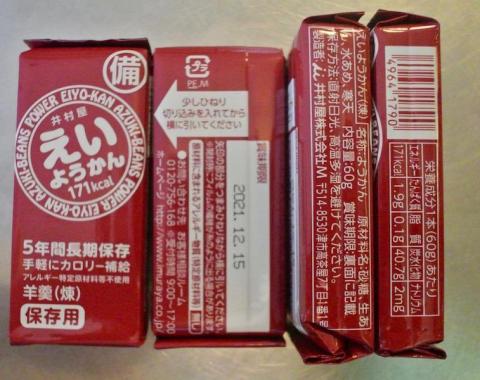 特にこの井村屋のえいようかんは、5年という他に例を見ない長期保存性能を有しております。