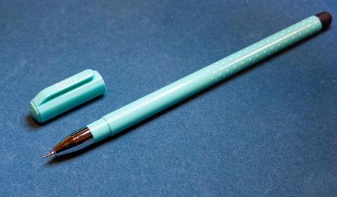 ボールペンは細身(0.5mm)の水性ボールペンで、なかなかに書き易い。