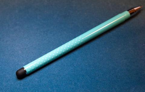 本品は女性向きを意識しており、ペン自体が細身でタッチペン側は水玉模様になっています。